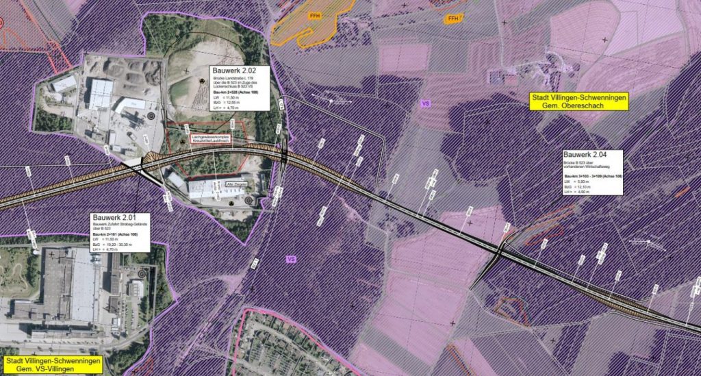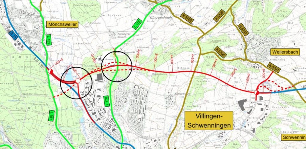 ➣ Die L178 (von Villingen nach Obereschach) und die K5709 (von Villingen/Nordstetten nach Weilersbach/Kappel) werden nicht an die Bundesstraße angeschlossen.